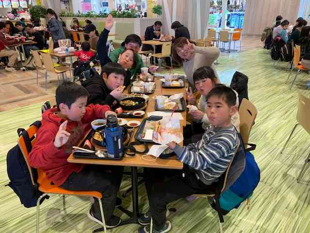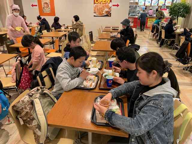 お昼ご飯です。みんな、上手に予算内におさめて、美味しいメニューをたくさん食べています。