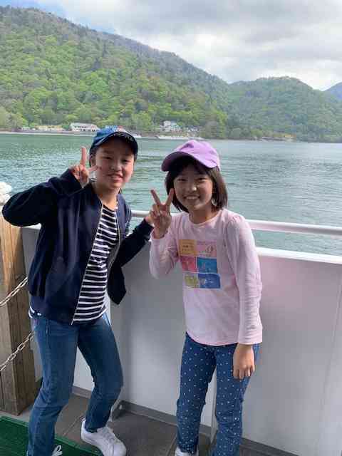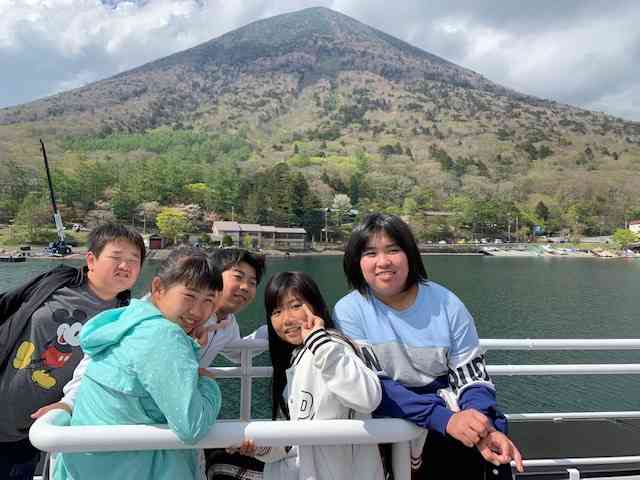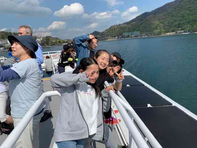 遊覧船に乗って、中禅寺湖を風を切って渡ります。男体山も目の前に迫ってくるようです。