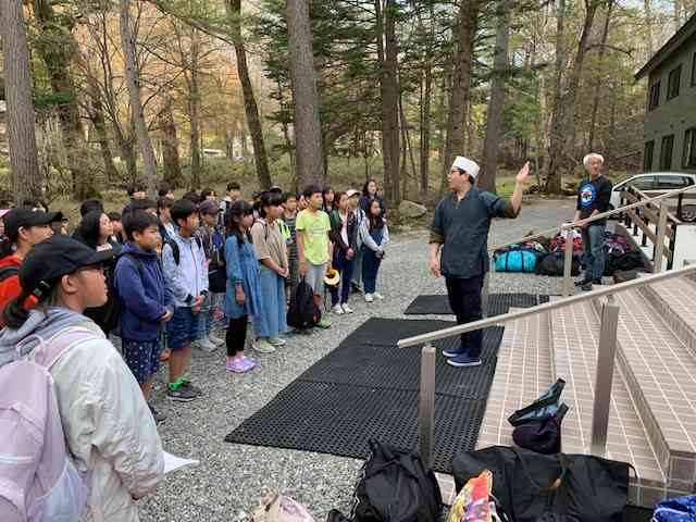 子供たちはみんな無事に宿舎(湯恵山荘)に到着しました。開校式の様子です。宿舎はできたてで学校として泊まるのは三小が初めてだそうです。みんな大感激です。キレイに使わせていただきます。