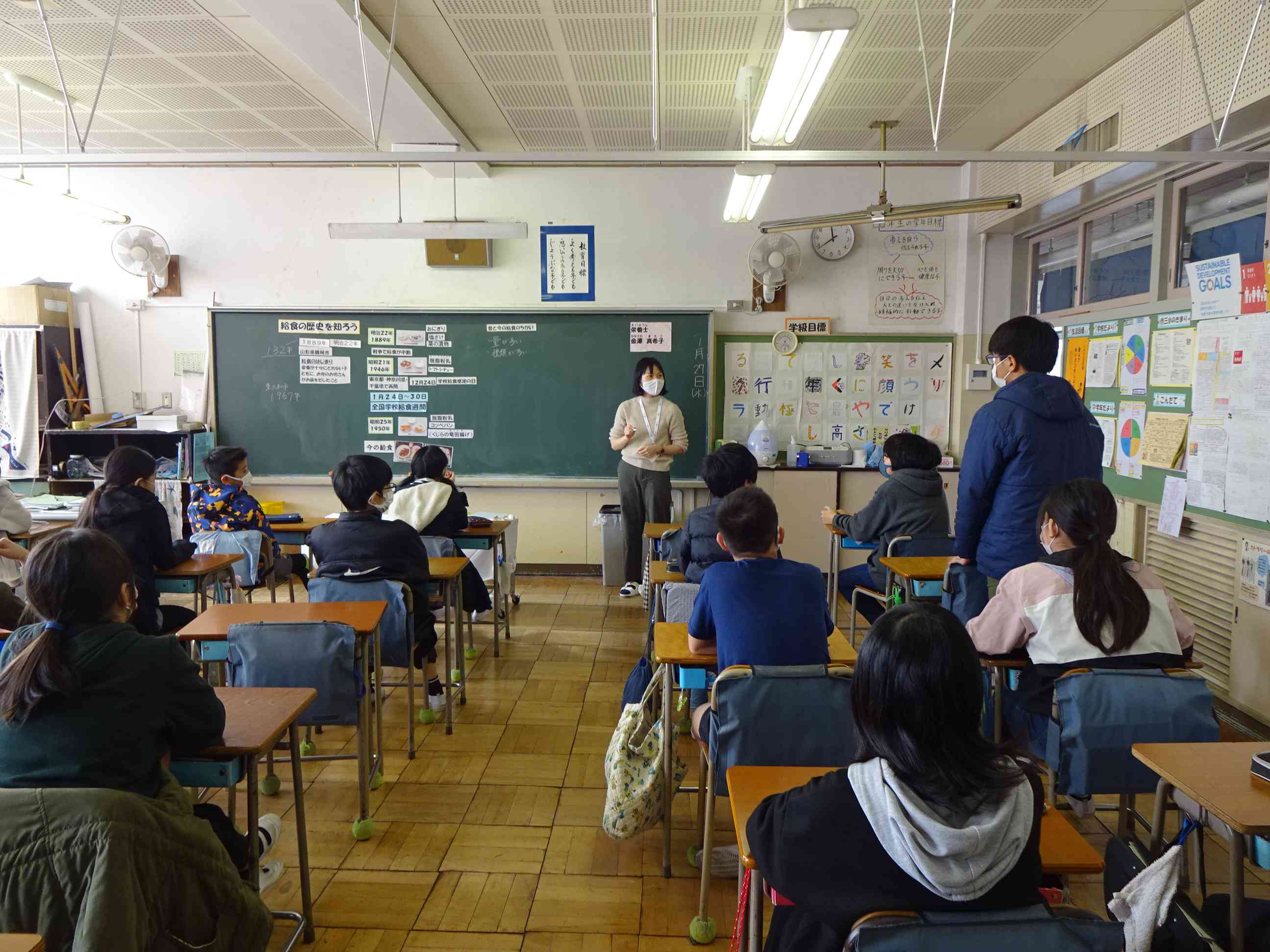 給食センターの栄養士さんが来校し、6年の各クラスで食育の授業を行いました。子供たちは学校給食の歴史について学びました。また、食べ物の大切さを理解するとともに、感謝する気持ちについても学習しました。