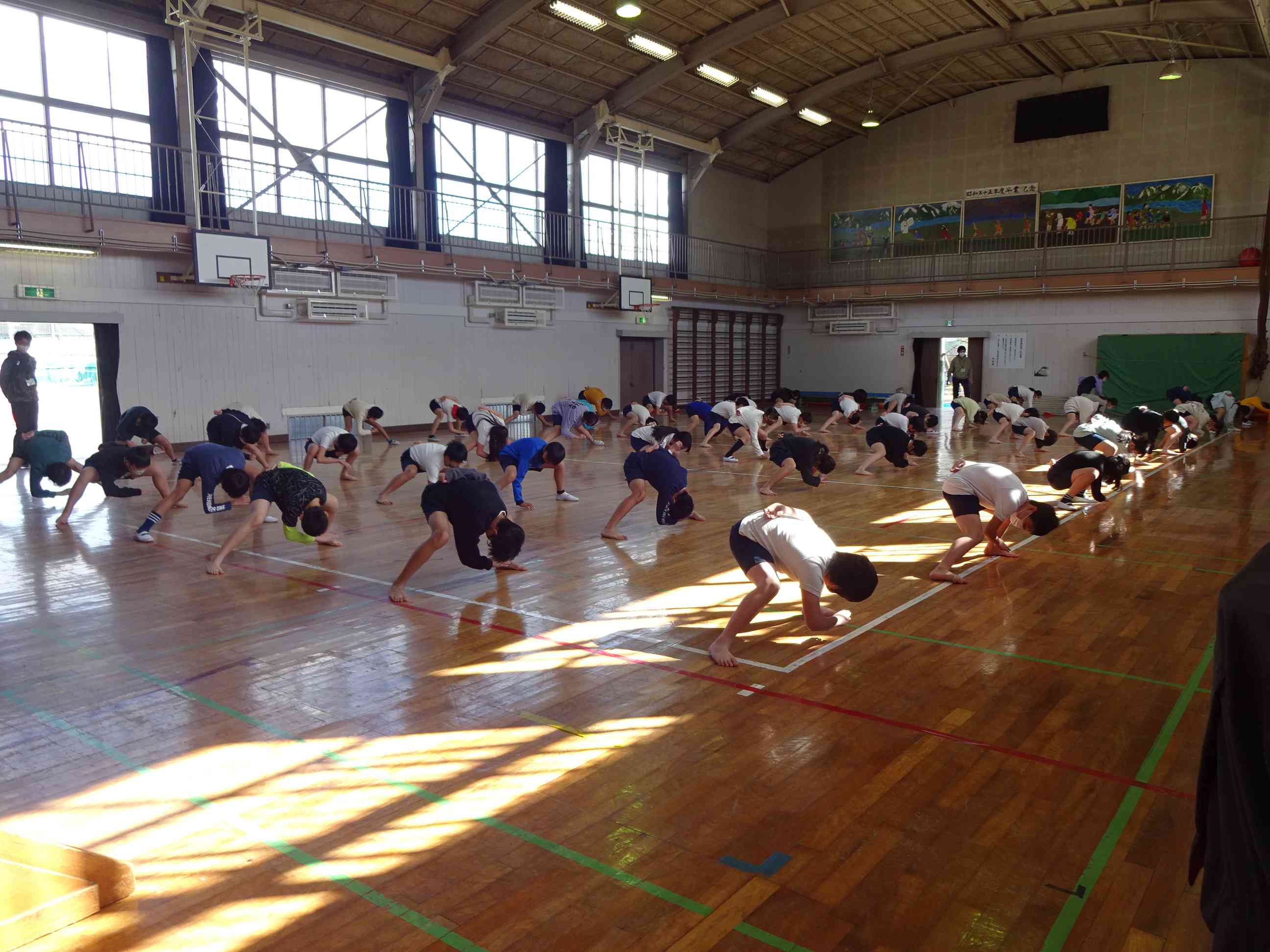 「6年生を送る会」のお礼で、3月11日に校庭で演じるため、練習しています。在校生の前で、最高学年として、すばらしいソーラン節を見せたいという意気込みで、頑張っています。