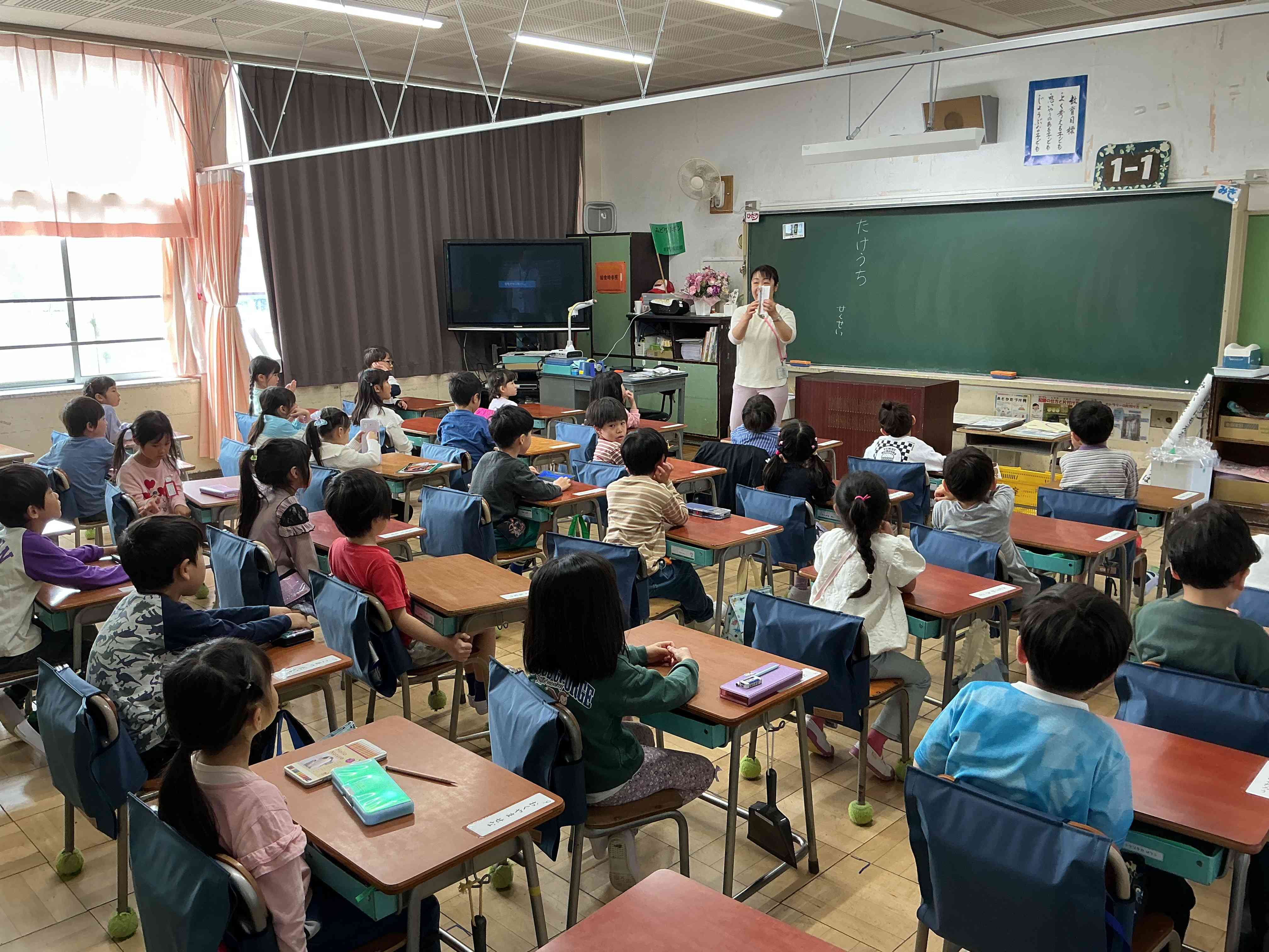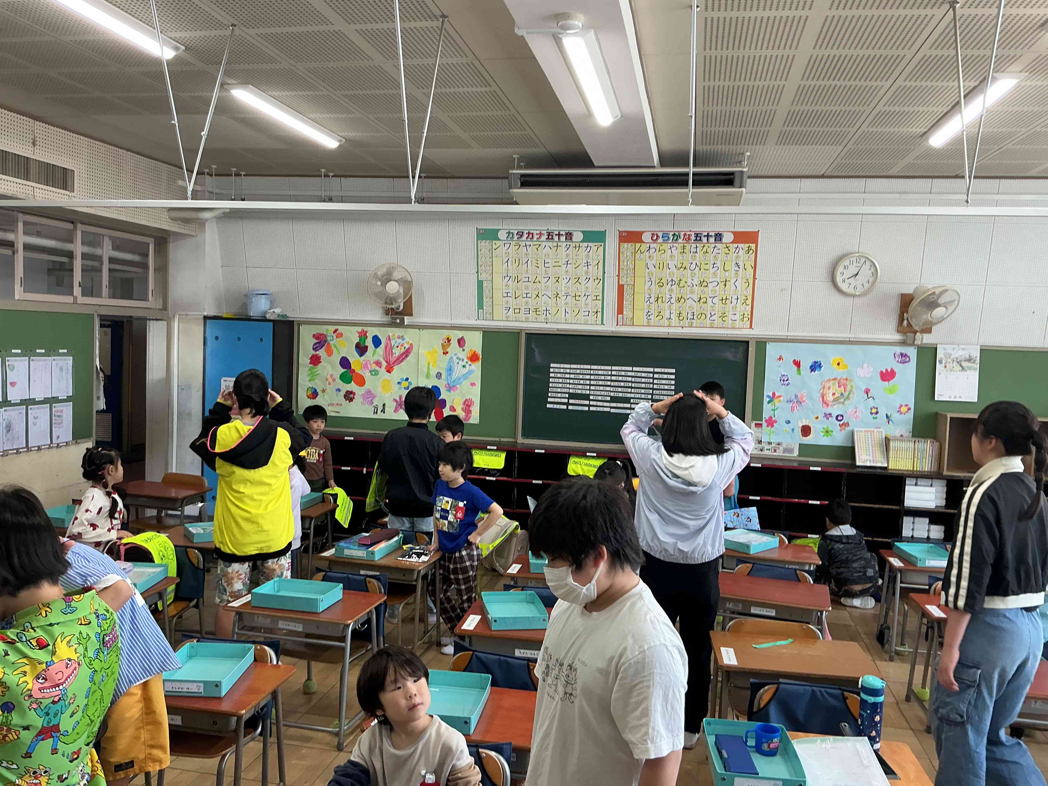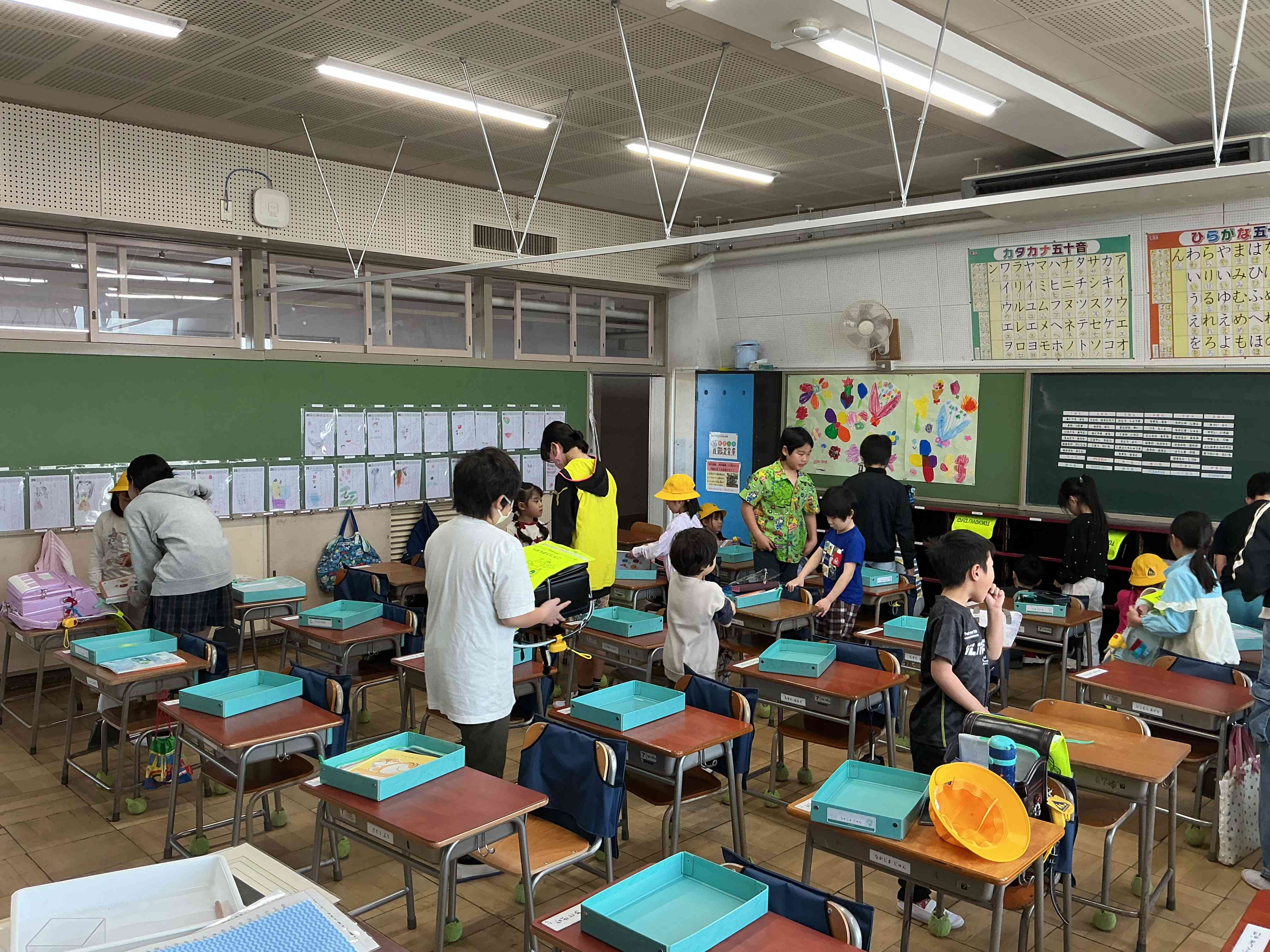 1年生が入学してきました。ドキドキワクワクしながら、学校生活を頑張っています。ランドセルから荷物を取り出して、引き出しに入れたり、トイレに行ったりするのも、1年生にとっては初めての体験です。戸惑うなか、6年生のお兄さん、お姉さんが優しく手伝ってくれています。 いろいろな経験をして、この一年大きく成長してくれる事でしょう。